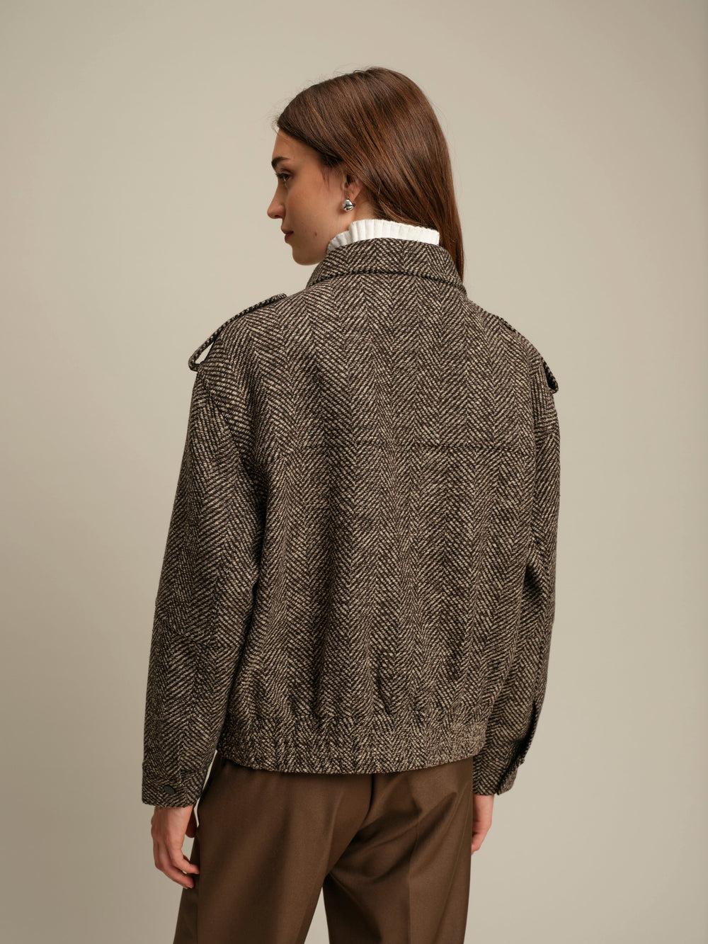 The Andrew Jacket offers a refined take on the classic bomber with its elegant herringbone pattern and structured epaulettes. Thoughtfully designed with front pockets and an inside pocket, it balances style and practicality, while the front button closure adds a polished finish. This jacket is perfect for those seeking a sophisticated layering piece that combines timeless detail with functional design.